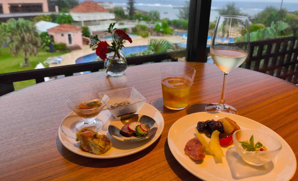 ホテル内にはウミガメが泳ぐ姿が見られるスポットもあり、ウミガメへの餌やり体験など、非日常感あふれる体験ができます。敷地内には鉄板焼きやシーフードなどを堪能できるレストランが複数ありますが、人気店は早めの予約が必須。朝食付きプランでは、緑と海に囲まれたテラス席でゆったりと食事を楽しむことができ、朝からシャンパンフリーフローを味わえるプランも。