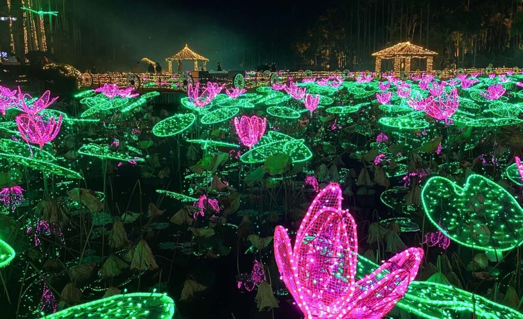 編集部のおすすめは「ひかりの蓮」エリア。広大な池一面に広がる蓮のイルミネーションは神秘的な美しさなので、ぜひチェックしてみてください!