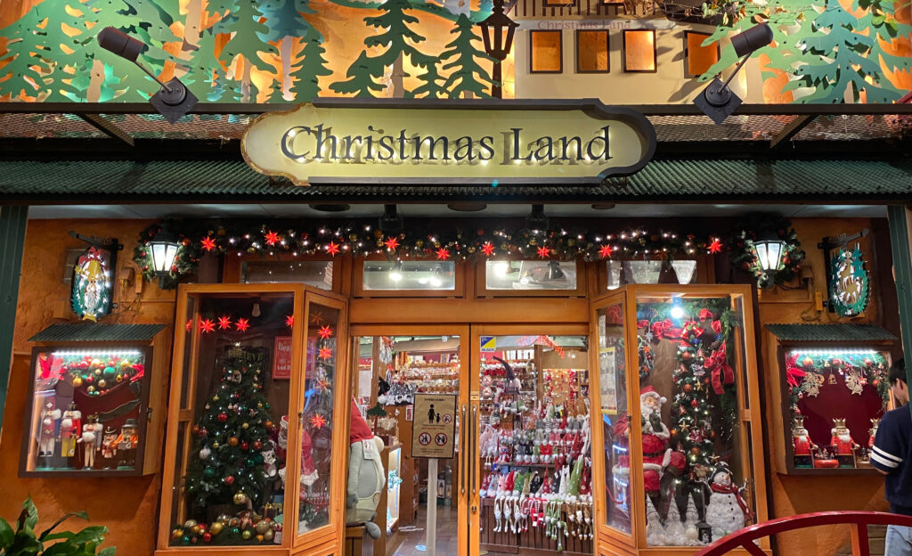 敷地内には、「クリスマスランド」と呼ばれるクリスマス雑貨専門店もあり、クリスマス装飾で埋め尽くされた店内は圧巻。海外のユニークなオーナメントやキャンドル、ギフトにもぴったりな雑貨が並び、見ているだけでもワクワクします。