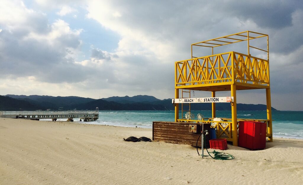 ※シーズンオフのビーチは、監視員やクラゲ防止ネットが設置されていない場合があります。個人で海に入る際は、十分に安全面へ配慮してください。