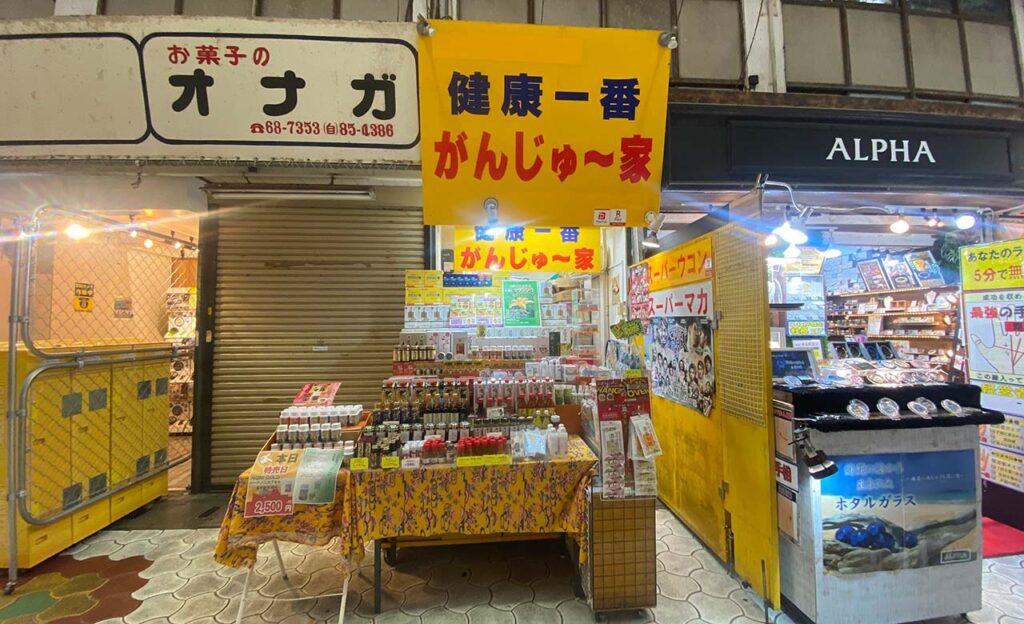 健康一番 がんじゅ~家は、沖縄産のウコンやすっぽんなどの健康食品やサプリを取り扱っているお店。店頭では、「ハブ油クリーム」という商品を発見しました!乾燥や肌荒れに効果的だそうです。レアな健康食品が気になる方はぜひ立ち寄ってみてください。