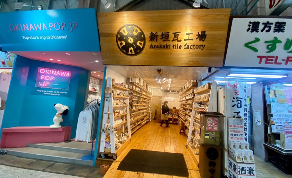 新垣瓦工場 市場本通り店は、瓦で作られた赤瓦コースターやアロマディフューザーを販売する沖縄生まれの瓦工場です。商品はどれも繊細なデザインで、思わず手に取りたくなる美しさ。店内はアロマの優しい香りが漂い、癒しの空間となっています。