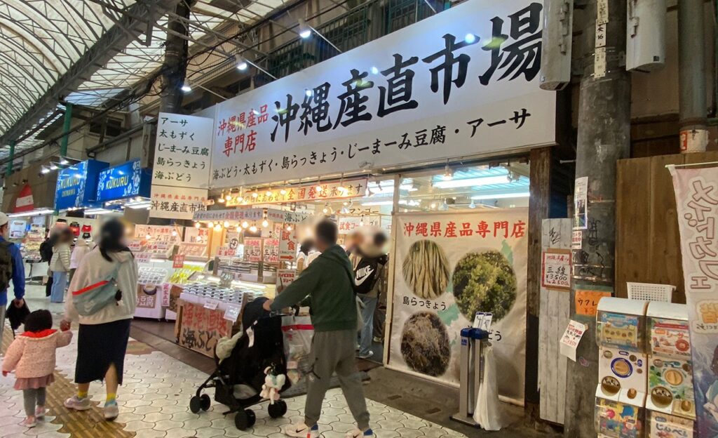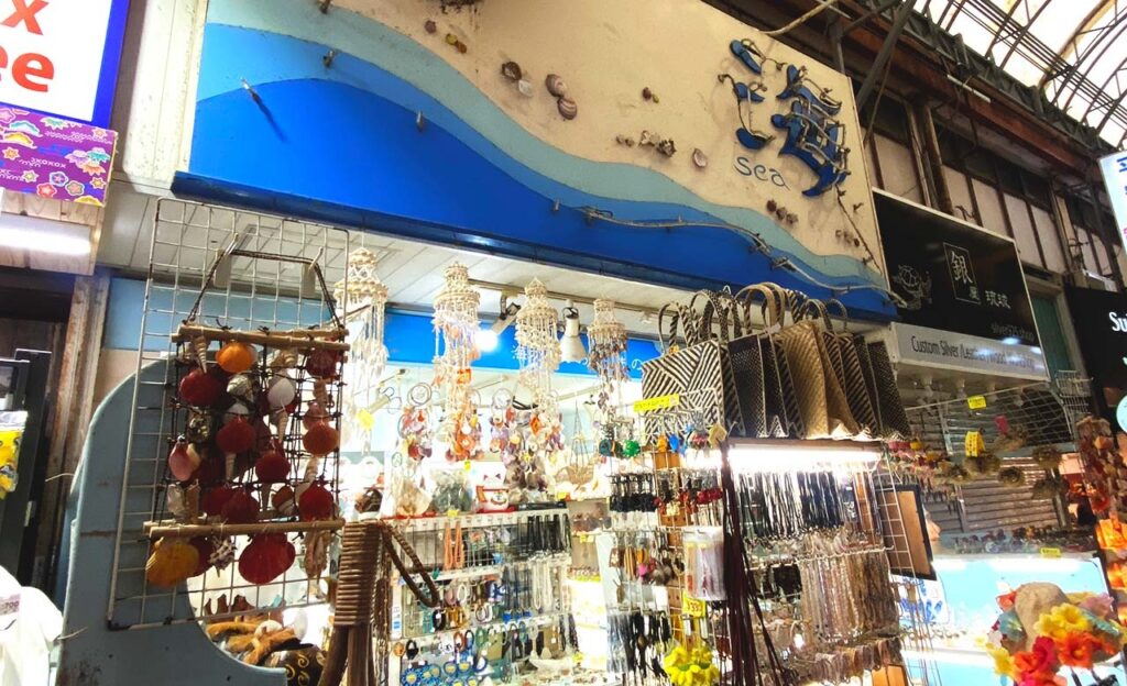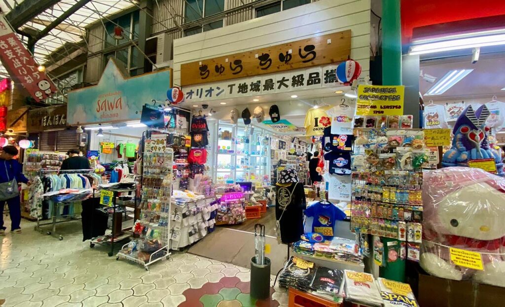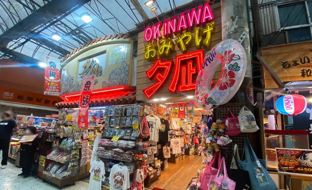 通り沿いには、お土産店や食べ歩きグルメ、Tシャツショップ、雑貨店など約60店舗がずらり。観光客はもちろん、地元の人の姿も多く、いつ訪れてもにぎやかな雰囲気が漂っています。国際通りから市場へ向かう途中に立ち寄りやすく、散策にもぴったりのスポットです。