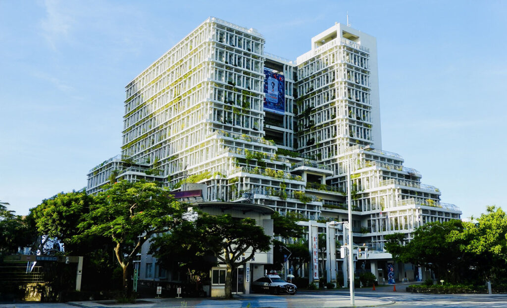 エスカレーターを降りて、タクシープールを右手に進むと交差点があります。交差点の左手が国際通り入り口で、右手には「那覇市役所」があります。那覇市役所は独特な形状をしており、外壁が緑で覆われた要塞のようなかっこいいデザインが特徴です。建築好きはわざわざこの建築を見るために訪れるほどだとか。県庁前駅の目の前にあるので、ちらっと見物してみてくださいね。