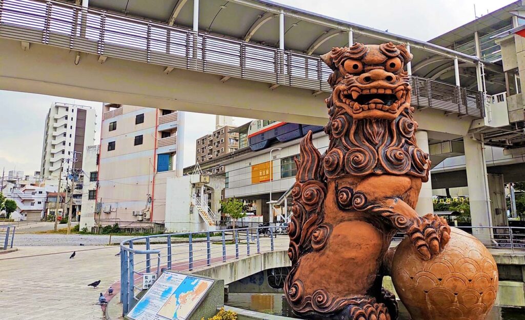 牧志駅のそばには巨大なシーサーが鎮座しています。存在感抜群なので記念撮影にぴったりですね!
