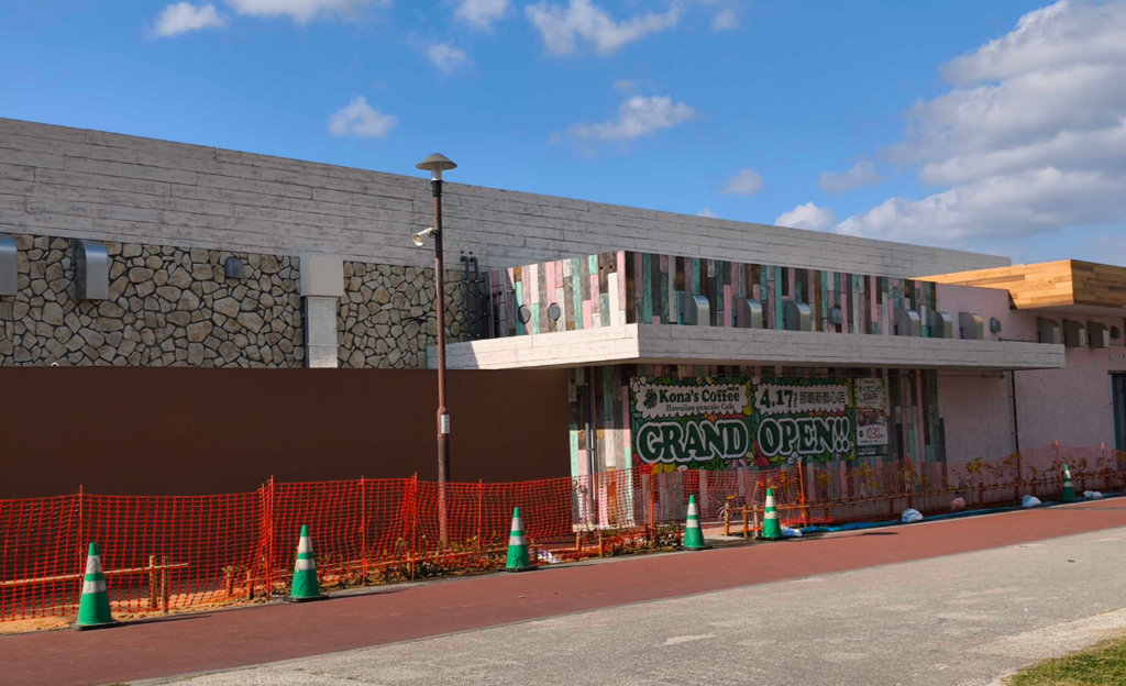 那覇空港からゆいレールで約18分でアクセスできる「おもろまち駅」に、「コナズ珈琲那 覇新都心公園」がグランドオープンします。オープン日は、2026年4月17日(金)を予定しており、3月中旬には店舗外装が徐々に見えてきました。