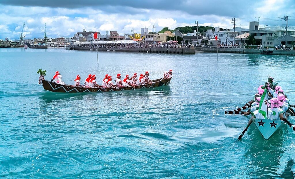 糸満ハーレーは沖縄で6月を代表する伝統行事のひとつ。ハーレーとは、龍をモチーフにした「爬龍船(はりゅうせん)」という船を使ったレースをする行事です。この行事には、豊漁や航海安全を祈願する意味が込められています。