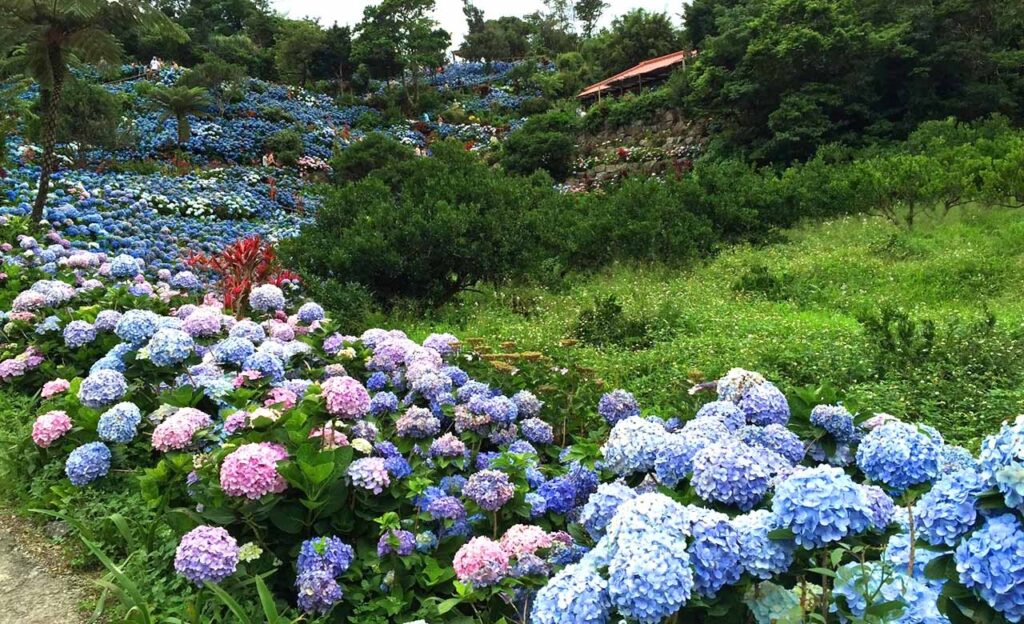 沖縄では、5月の下旬から6月にかけて紫陽花の見頃を迎えます。特におすすめのスポットなのが、北部エリアの本部町にある「よへなあじさい園」です。約1万株、30万輪もの紫陽花が咲き誇る、沖縄を代表する紫陽花の名所として知られています。