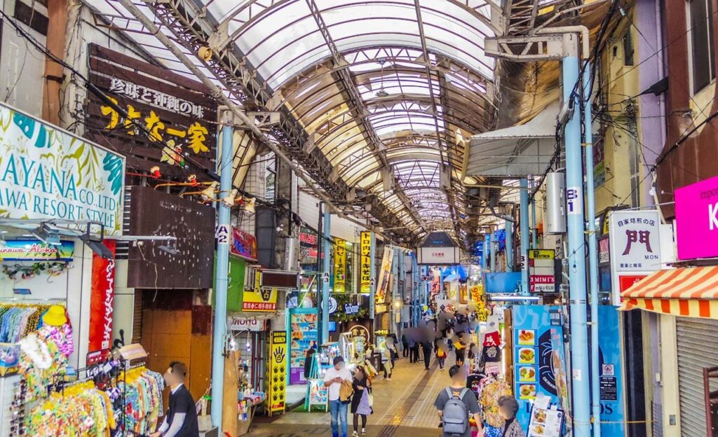屋内観光スポットのなかでもおすすめなのが、国際通り周辺のアーケード街です。沖縄観光の定番スポットである国際通りも、アーケードのあるエリアなら雨を気にせず散策やショッピングを楽しめます。中でも「市場本通り」は、お土産店やスイーツ店が集まる人気のスポットとして知られています。