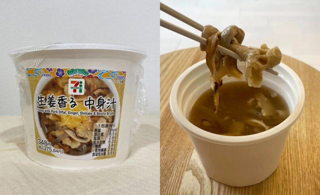 セブンイレブン・沖縄の商品を実食してみて一番驚きだったのが、実はこの商品。モツの旨味はしっかり感じられる一方で、生姜が効いているため臭みはほとんど気になりません。モツに加えて、椎茸やこんにゃくなど具材もたっぷりで、食べ応えも◎