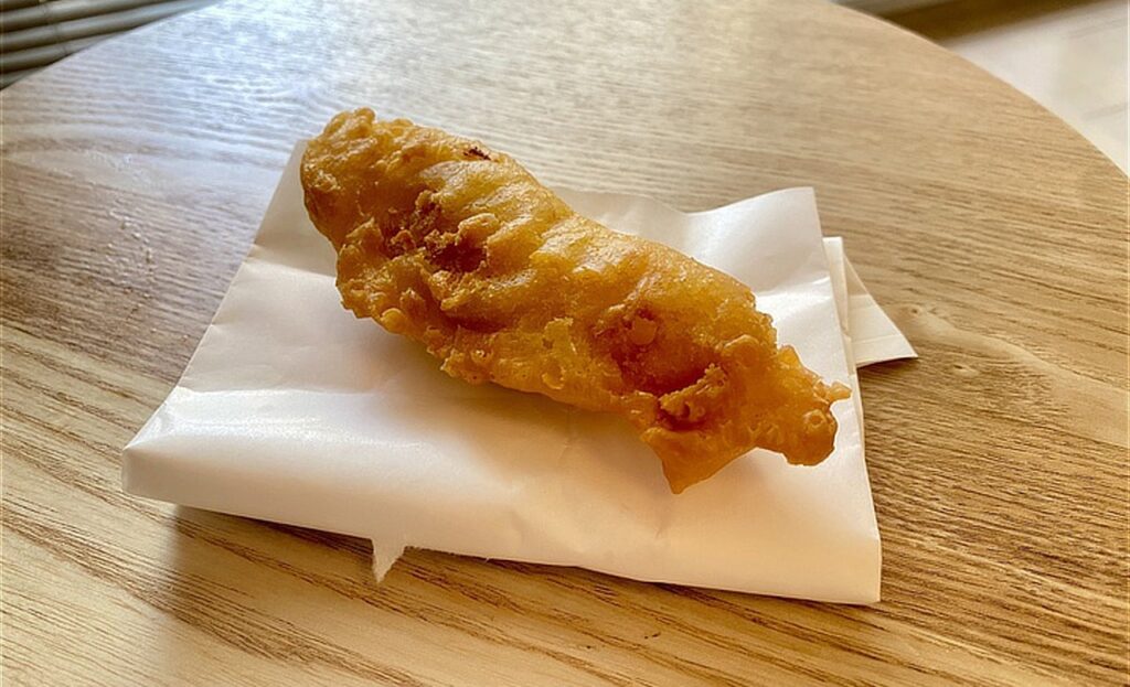今回は白身魚をチョイス。ほろっとほどける白身魚と、やわらかな衣の相性がよく、食べ応えも十分でした。観光で少し疲れたときのエネルギー補給におひとついかがでしょうか。