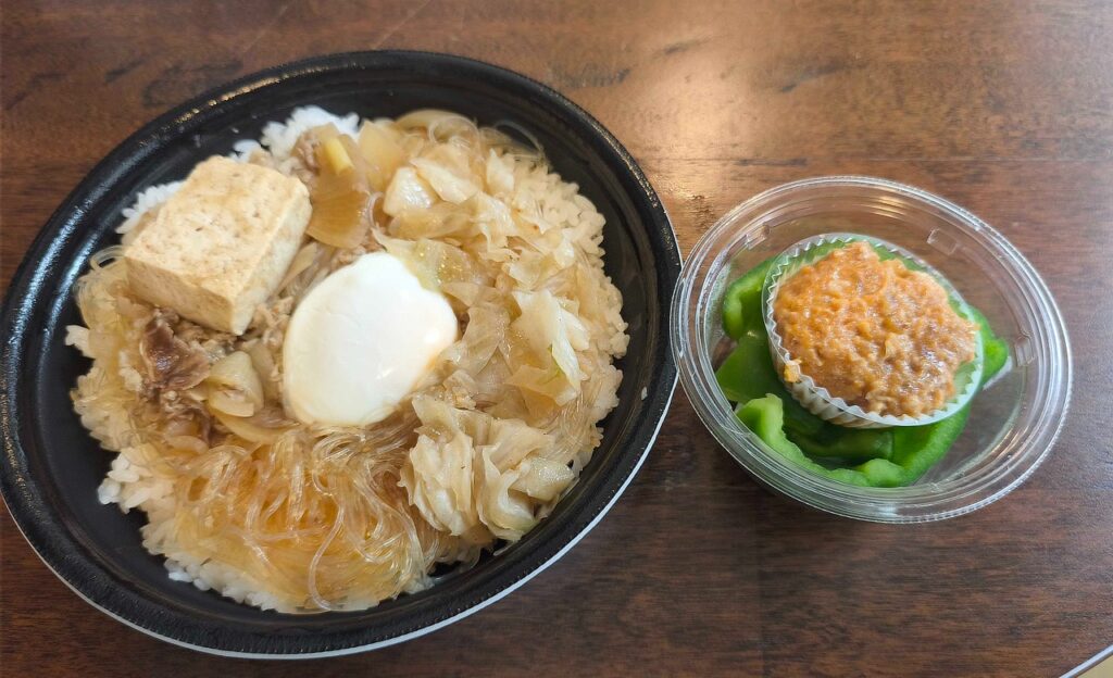 セブンイレブン・沖縄の「沖縄の味すき焼き弁当」は、甘辛い味付けが特徴。食材にはタレがしっかりと絡み、ご飯がどんどん進みます。個人的には、給食で食べたすき焼きを思い出すような、どこか懐かしさを感じる一品でした。