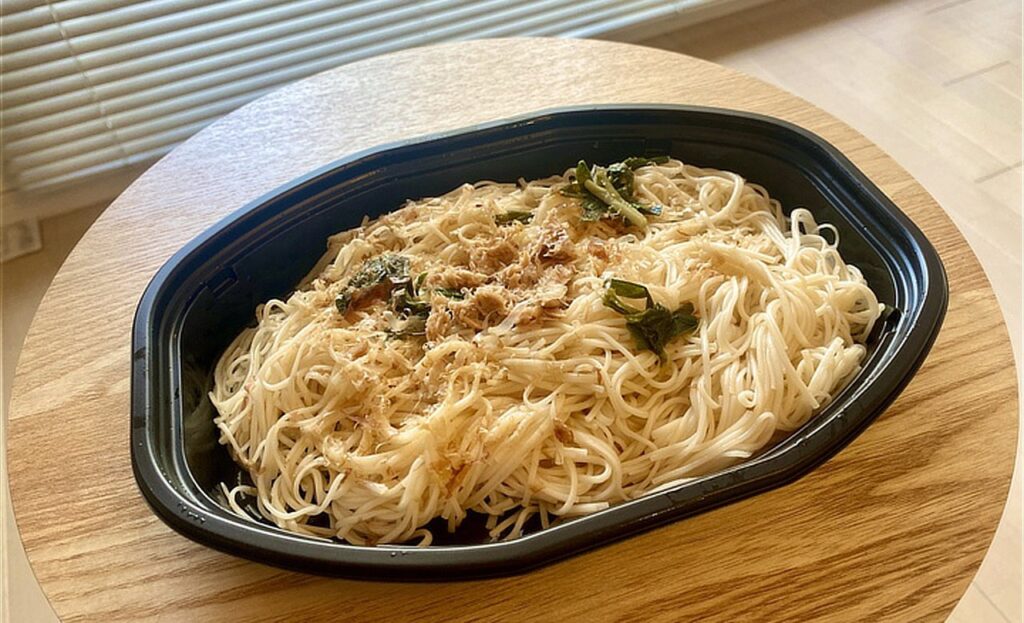ローソン沖縄のソーメンタシヤーは、素朴な見た目ながら、ツナと出汁の旨味がしっかり効いていて満足感のある味わいです。定番のゴーヤーチャンプルーをすでに味わった方は、ぜひこちらもチャレンジしてみてください。